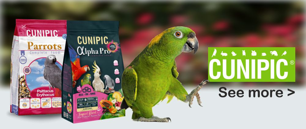 A strong foundation for feeding large parrots is CUNIPIC Premium Parrot,developed specifically for amazons, African greys, macaws and other large parrots. The food has been formulated in cooperation with veterinarians and nutrition specialists focused on exotic animals, and its composition meets parrots’ daily nutritional requirements. It contains ample protein and essential amino acids that support muscle condition, metabolism, feather health and vibrant coloration.